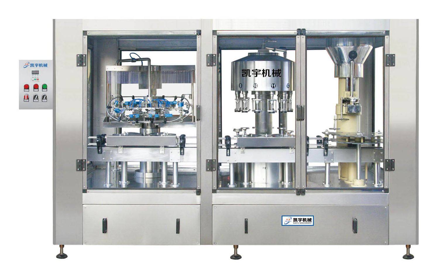 SYGZ-24-16-1型沖瓶灌裝打塞三聯(lián)機(jī) 三聯(lián)體機(jī)主要是為葡萄酒、果酒灌裝而設(shè)計(jì)的設(shè)備,本設(shè)備是將翻轉(zhuǎn)沖瓶機(jī)、負(fù)壓灌裝機(jī)、打塞機(jī)有 機(jī)組合為一體,設(shè)備結(jié)構(gòu)緊湊,節(jié)省安裝空間 ...